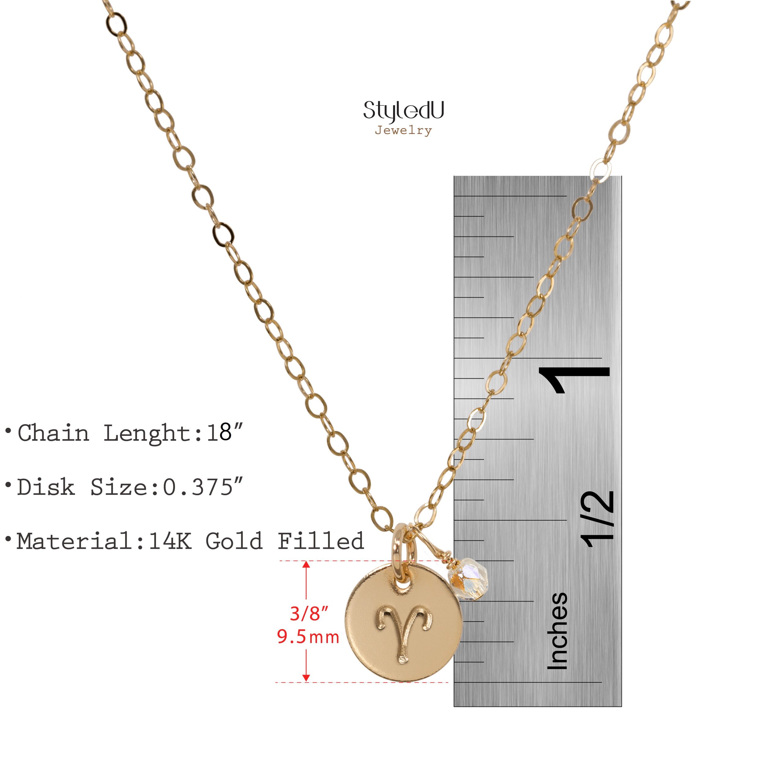 Aries Zodiac Necklace with Stone Small