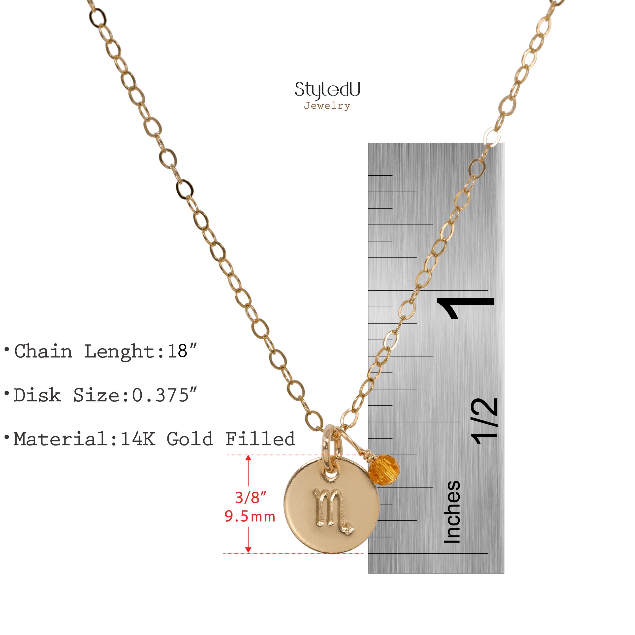- ✔️ HONEST AND QUALITY MATERIALS: Our Scorpio necklace is a classic piece of jewelry that is made with a premium 14k gold filled chain and hand stamped zodiac pendant, along with a 14k gold filled StyledU tag and spring ring clasp. Our jewelry is made with honest and quality materials that will keep its color and shine forever. The materials are sourced from America and each piece of the necklace is hand-cut, stamped, assembled, & packaged by our team in our Ridgewood, New Jersey studio