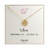 14k gold-filled medium disc(15.9mm) is on a Libra zodiac sign necklace on “Libra” message card.