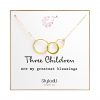 Gold-vermeil 3 circles necklace on the “Three Children” message card.